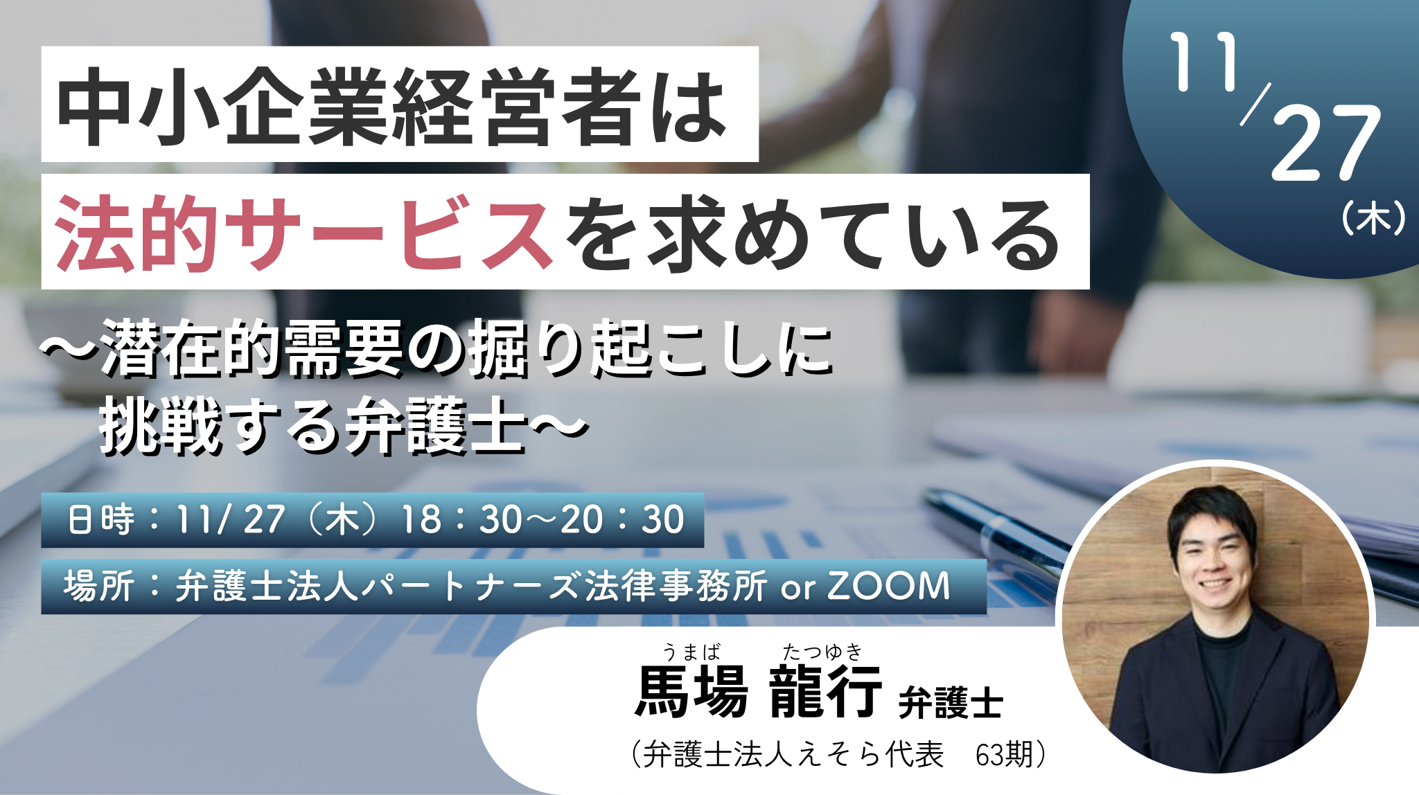 リアル参加&zoom「中小企業経営者は法的サービスを求めている~潜在的需要の掘り起こしに挑戦する弁護士」開催のお知らせ